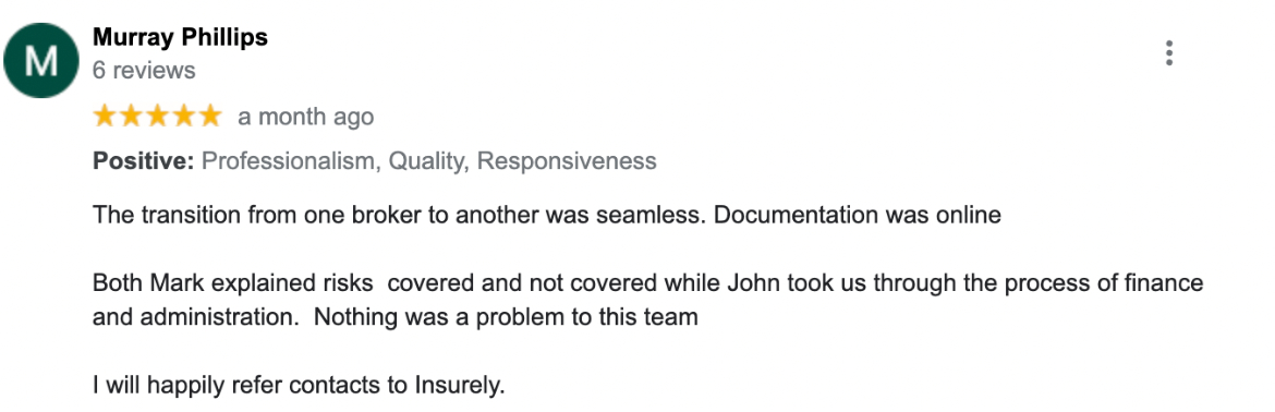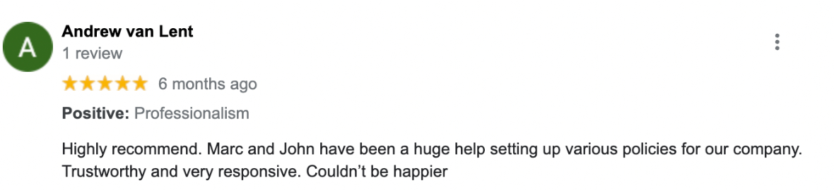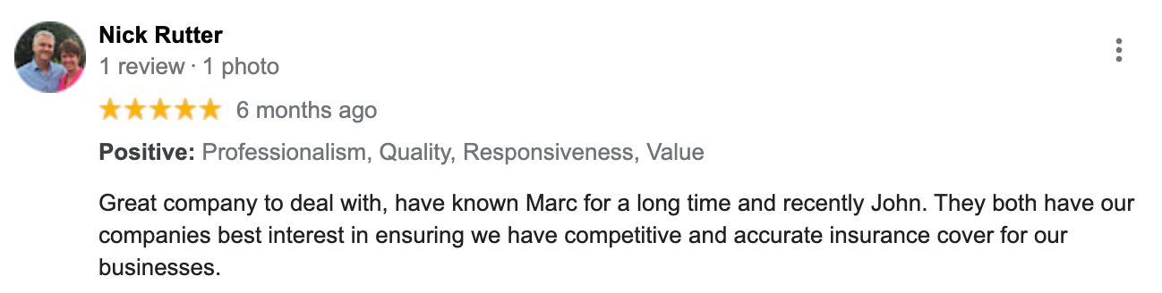 "Marc and the Insurely team are very approachable and understand our insurance needs, he explores options and ensures that we are getting the best policy that fits our business. Marc responds to all our insurance enquires, no matter how menial promptly. Highly recommend"